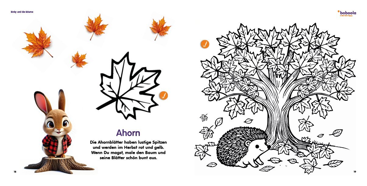 Gestalte mit Binky die Natur. Entdecke und male die zauberhafte Welt der Bäume.
