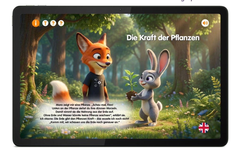 Dieses Edu-Book verbindet Storytelling, interaktive Lernmodule und hochwertige Audioinhalte zu einem besonderen Erlebnis für neugierige Kinder.