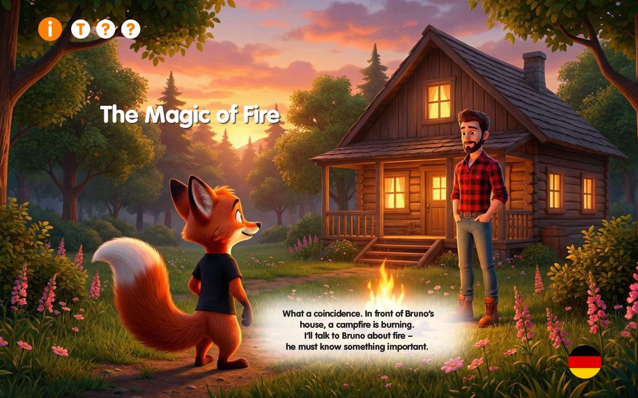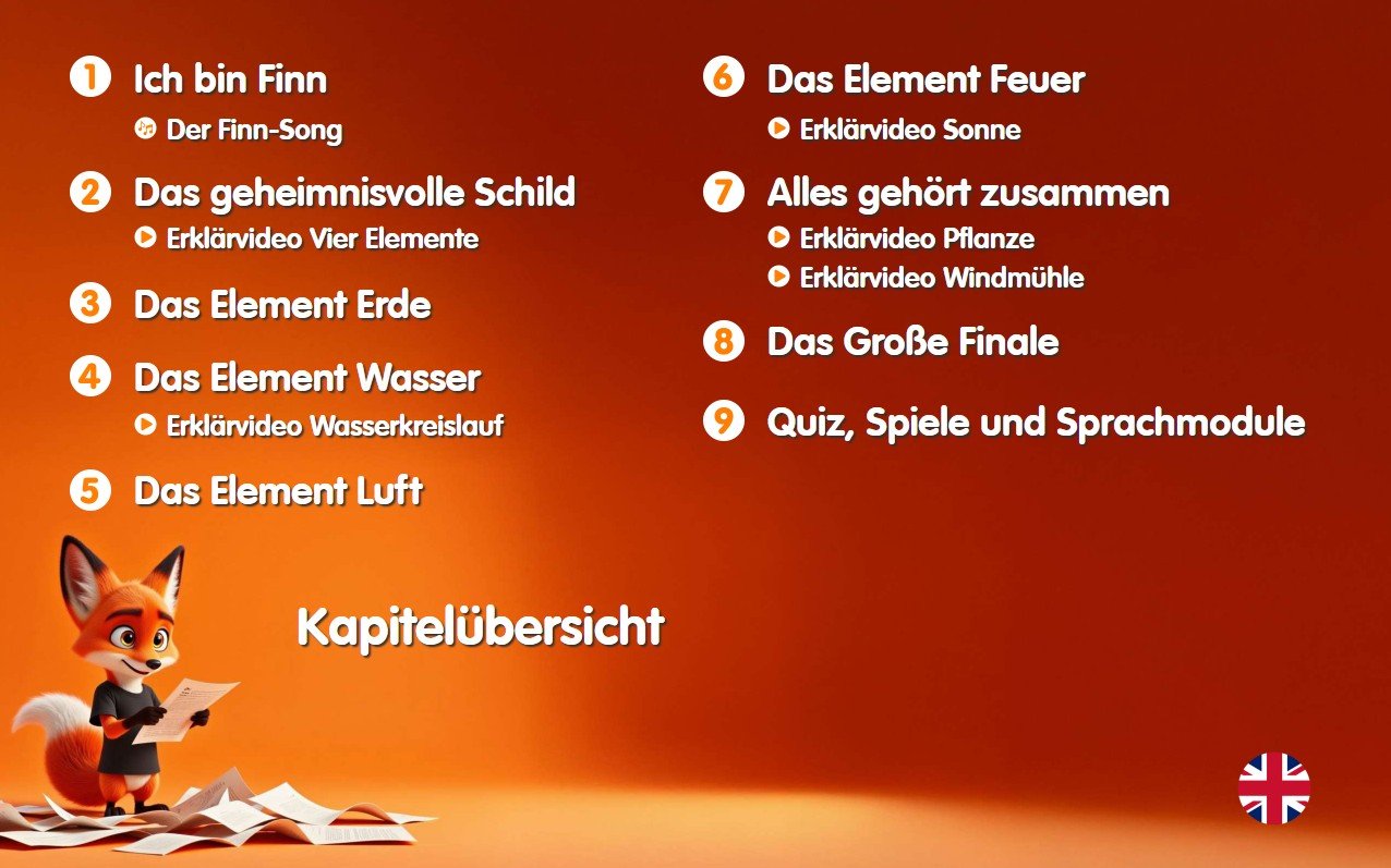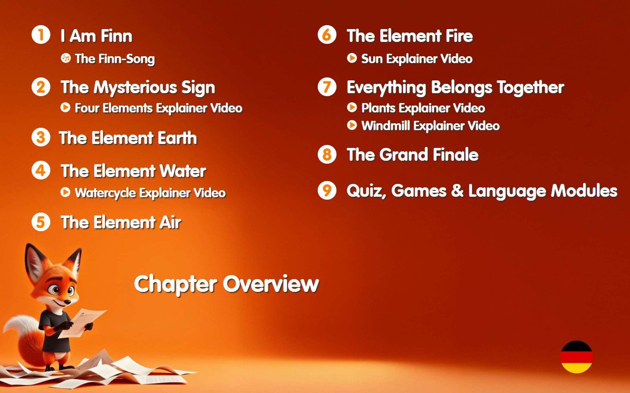 Charakterstimmen begleiten Kinder durch Finns Abenteuer und lassen die Welt der Elemente lebendig werden.Audio und Musik sorgen dafür, dass Kinder noch tiefer in die Geschichte eintauchen können.